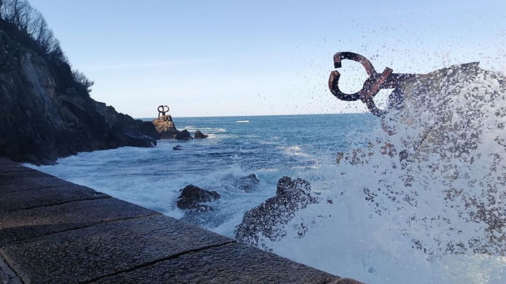 Aquí encontrarás las esculturas de acero de Eduardo Chillida, tres piezas enormes que están clavadas en las rocas. Su idea era que el viento y el mar se convirtieran en parte de la obra, ya que esta cambia según el día y el oleaje.